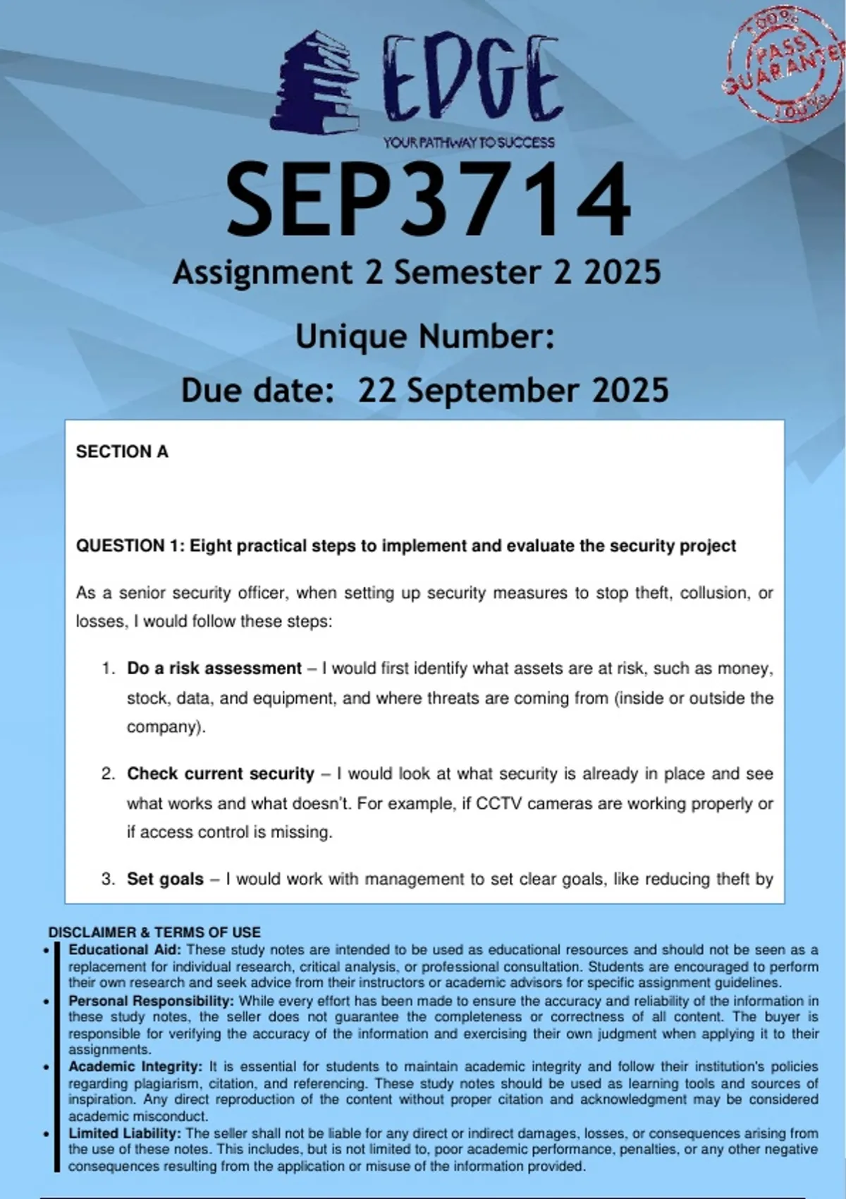 QUESTION 1: Eight practical steps to implement and evaluate the security project