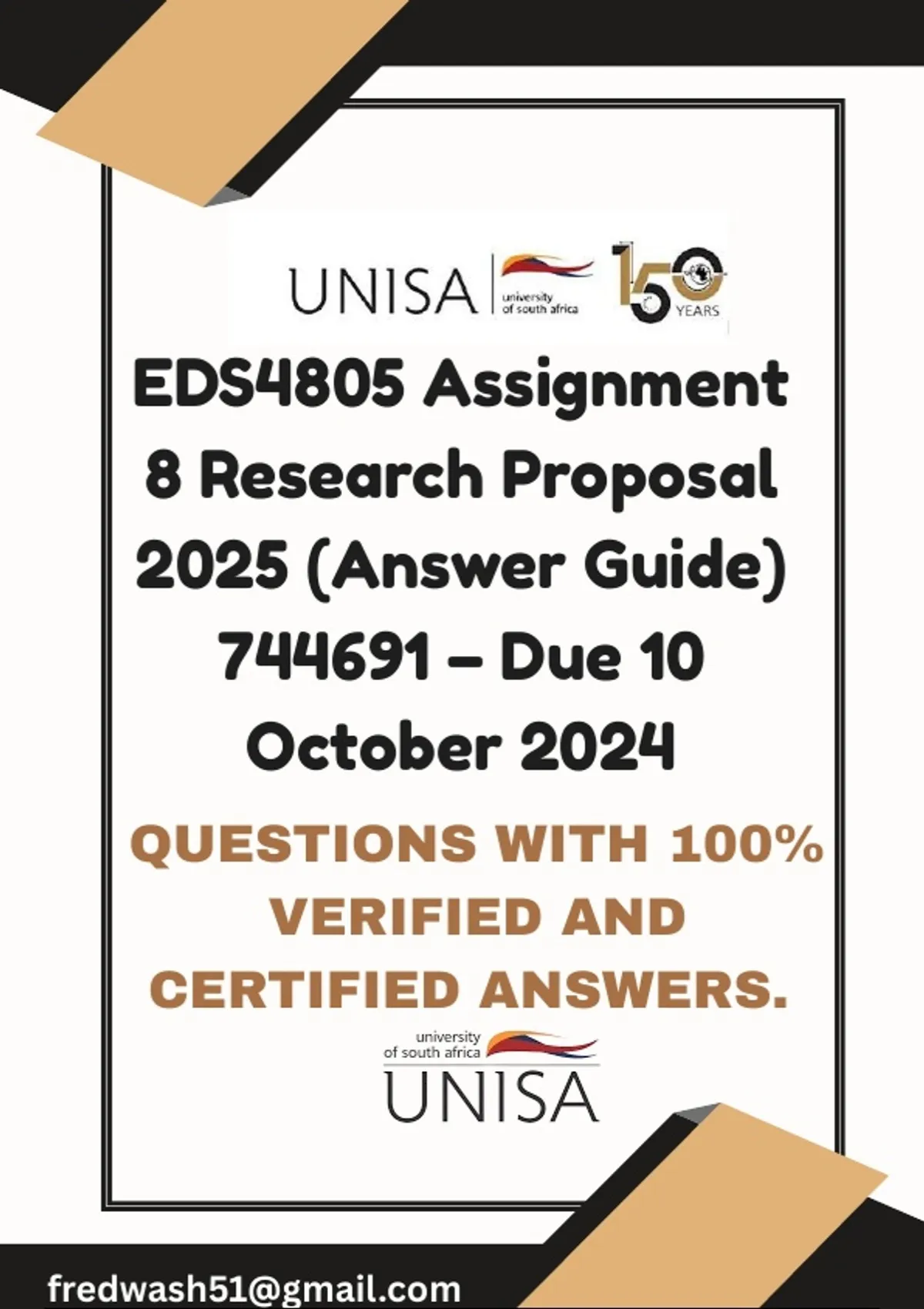 EDS4805 Assignment 8 Research Proposal 2025 (Answer Guide) 744691 – Due 10