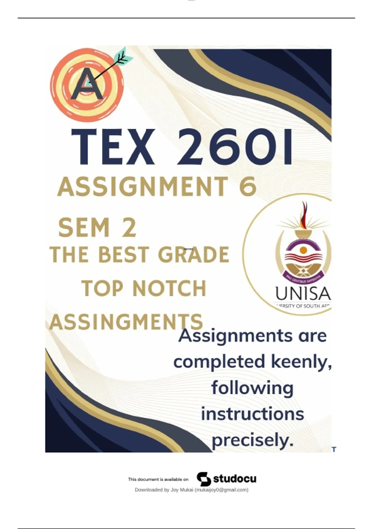 EX2601 Assignment 6 PORTFOLIO (COMPLETE ANSWERS) Semester 2 2025