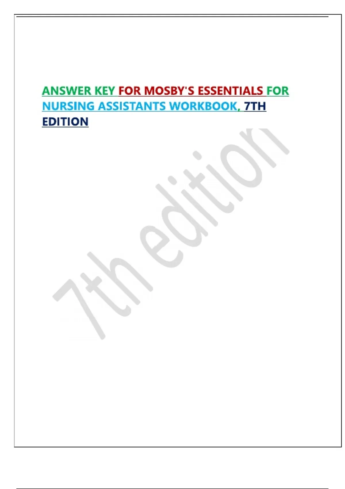 Answer Key for Mosby’s Essentials for Nursing Assistants Workbook – 7th Edition by Sheila A. Sorrentino, Leighann Remmert & Mary J. Wilk | Complete 2025–2026 Nursing Assistant Workbook Solutions with Verified Answers and Detailed Explanations – All Chapte