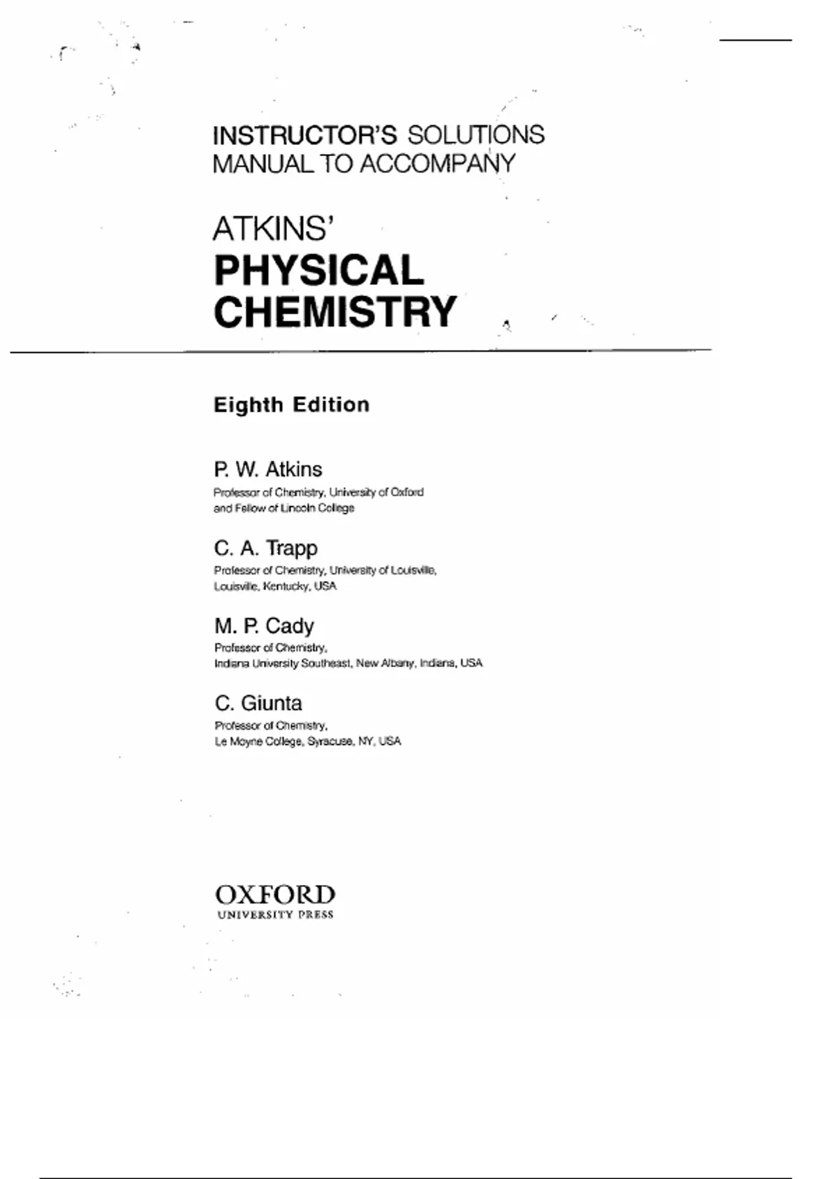 Instructor’s Solutions Manual for Atkins’ Physical Chemistry by P. W. Atkins, University of Oxford – Verified Complete Edition 2025/2026