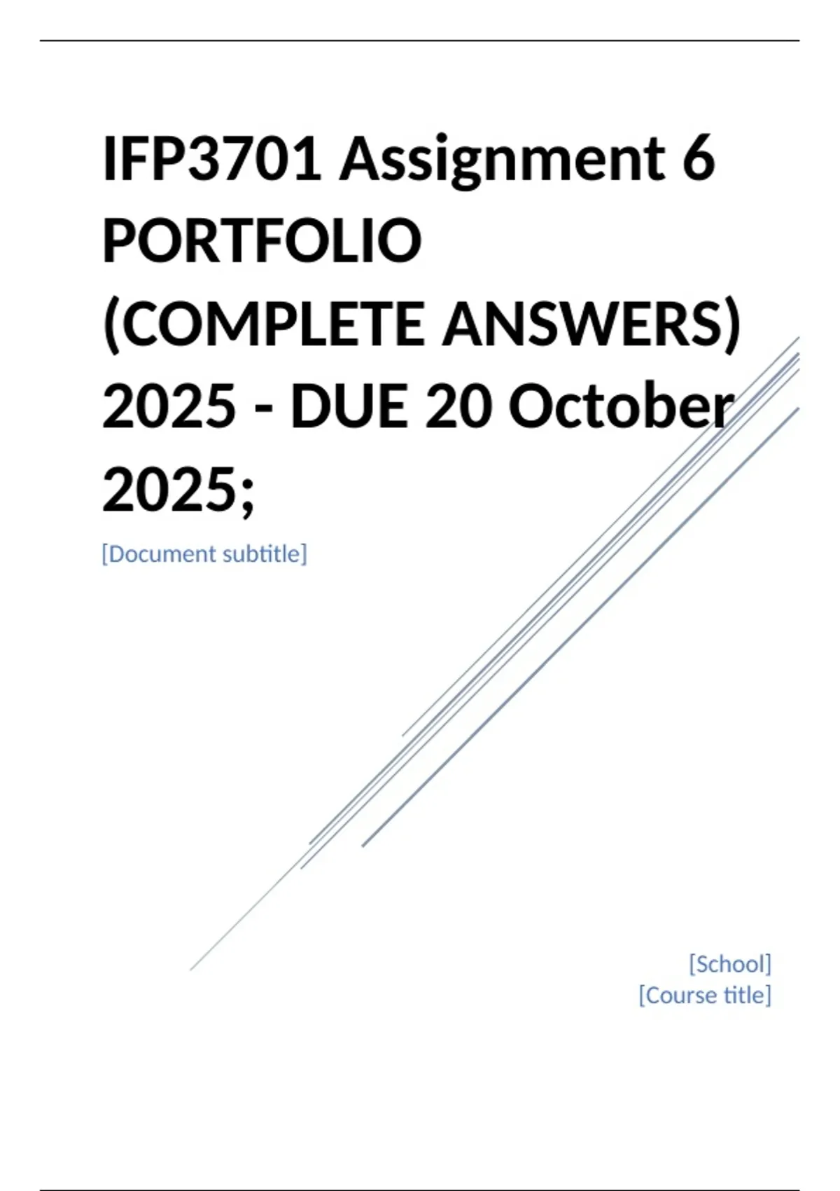 , IFP3701 Assignment 6 PORTFOLIO (COMPLETE ANSWERS) 2025 - DUE 20 October 2025;