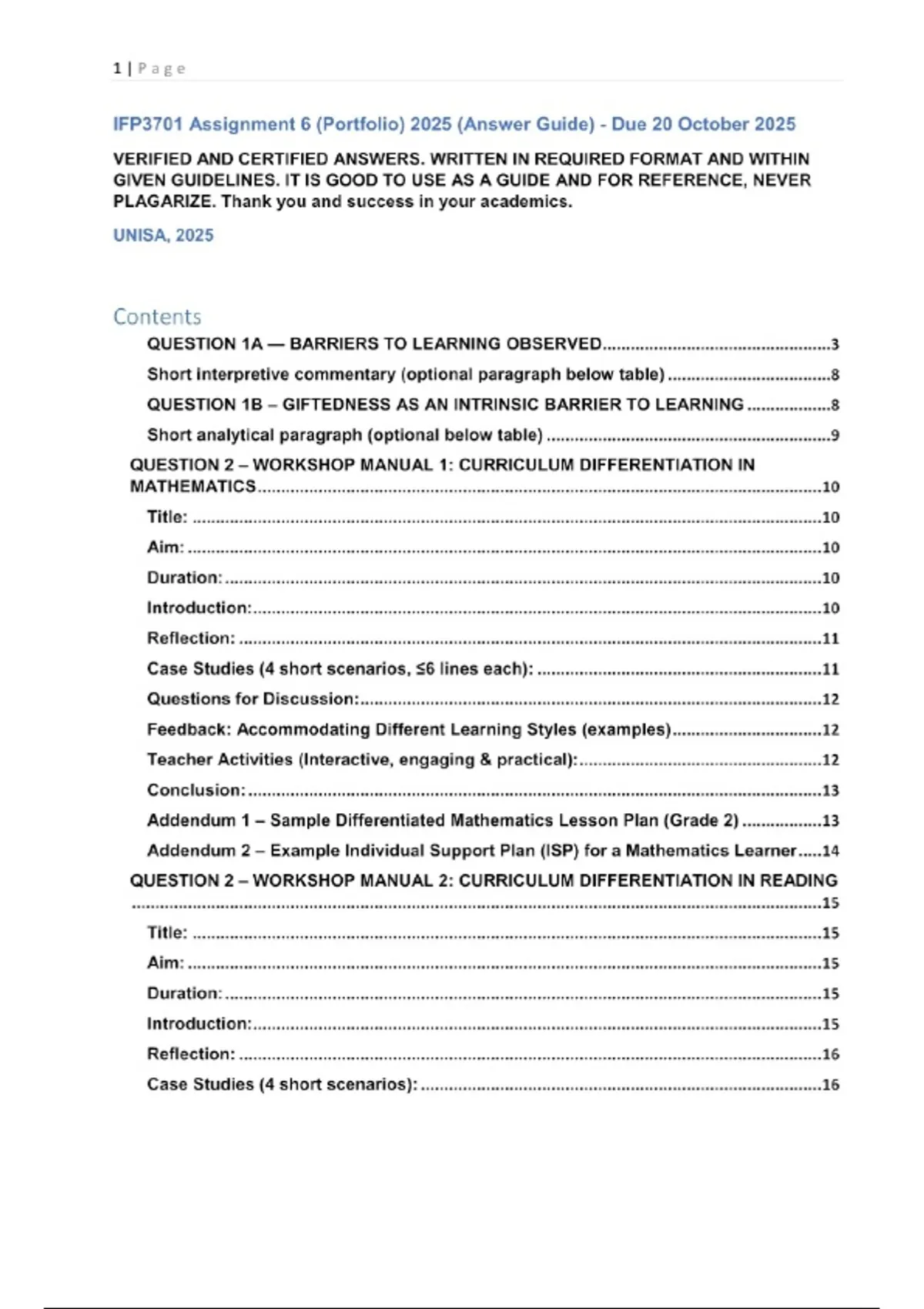 IFP3701 Assignment 6 2025 Questions with certified answers