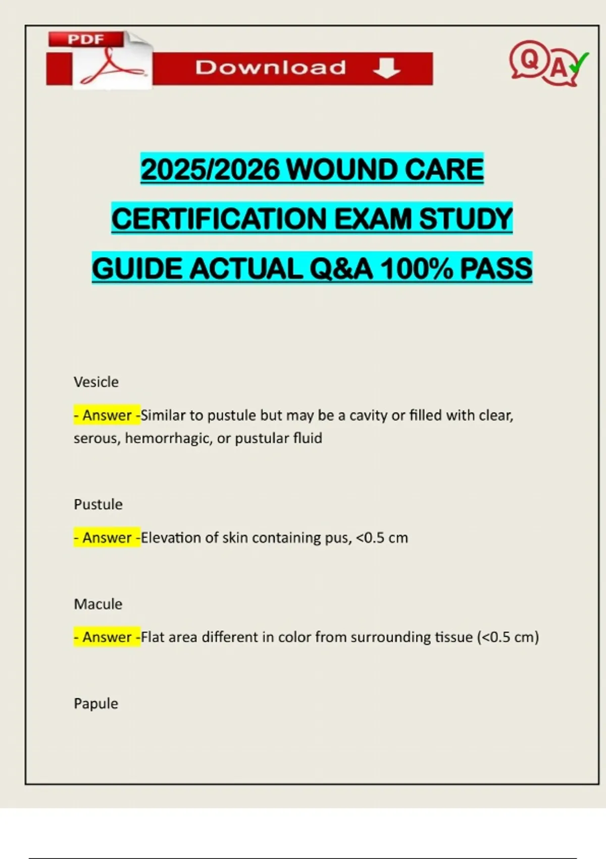 2025/2026 WOUND CARE CERTIFICATION EXAM STUDY GUIDE ACTUAL Q&A 100% PASS