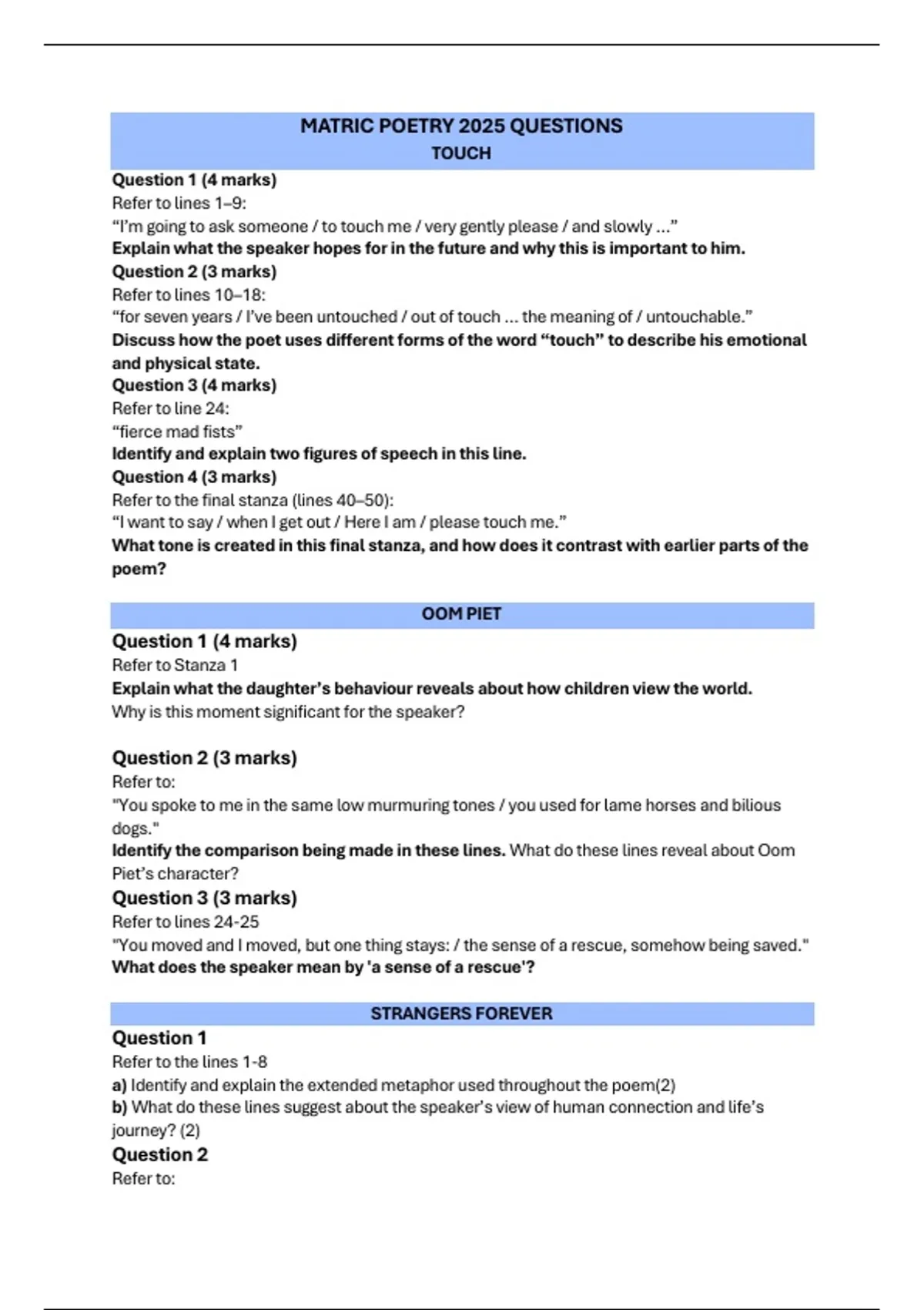 a) What is the significance of the inversion “Forever strangers” at the end of the poem? (2)