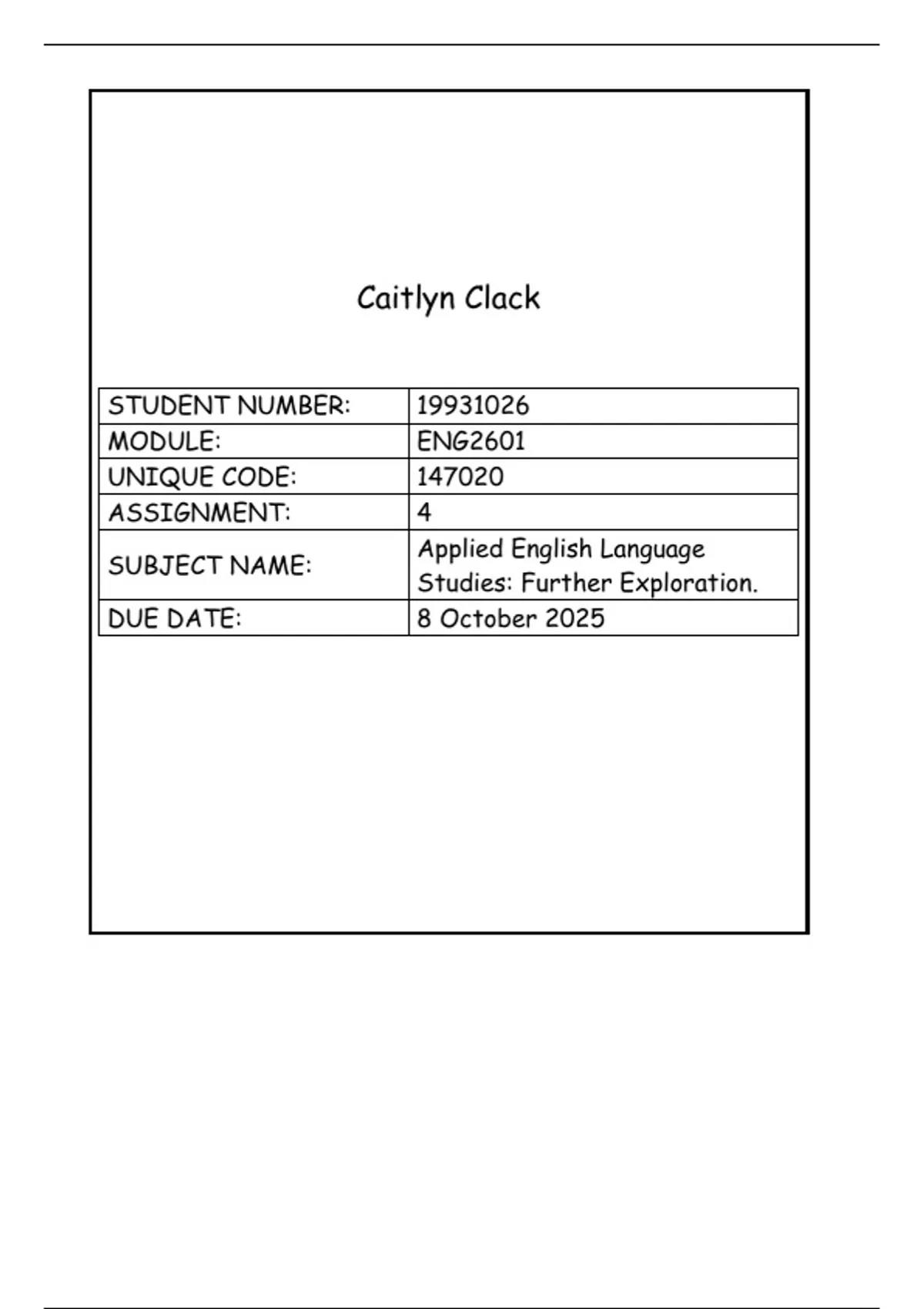 Student number: 19931026 Module: ENG2601
