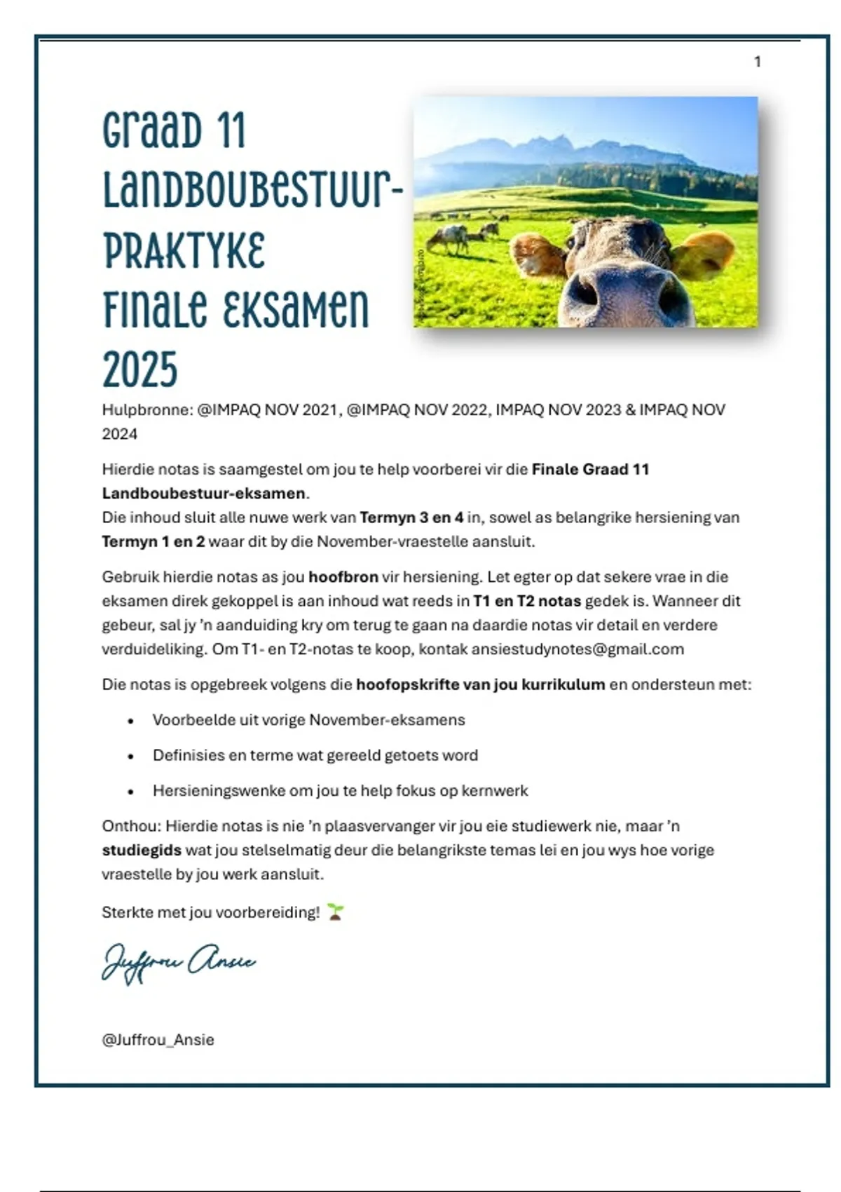 Gebruik hierdie notas as jou hoofbron vir hersiening. Let egter op dat sekere vrae in die