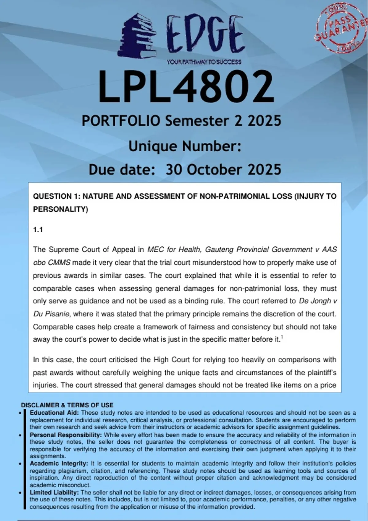 these study notes, the seller does not guarantee the completeness or correctness of all content. The buyer is