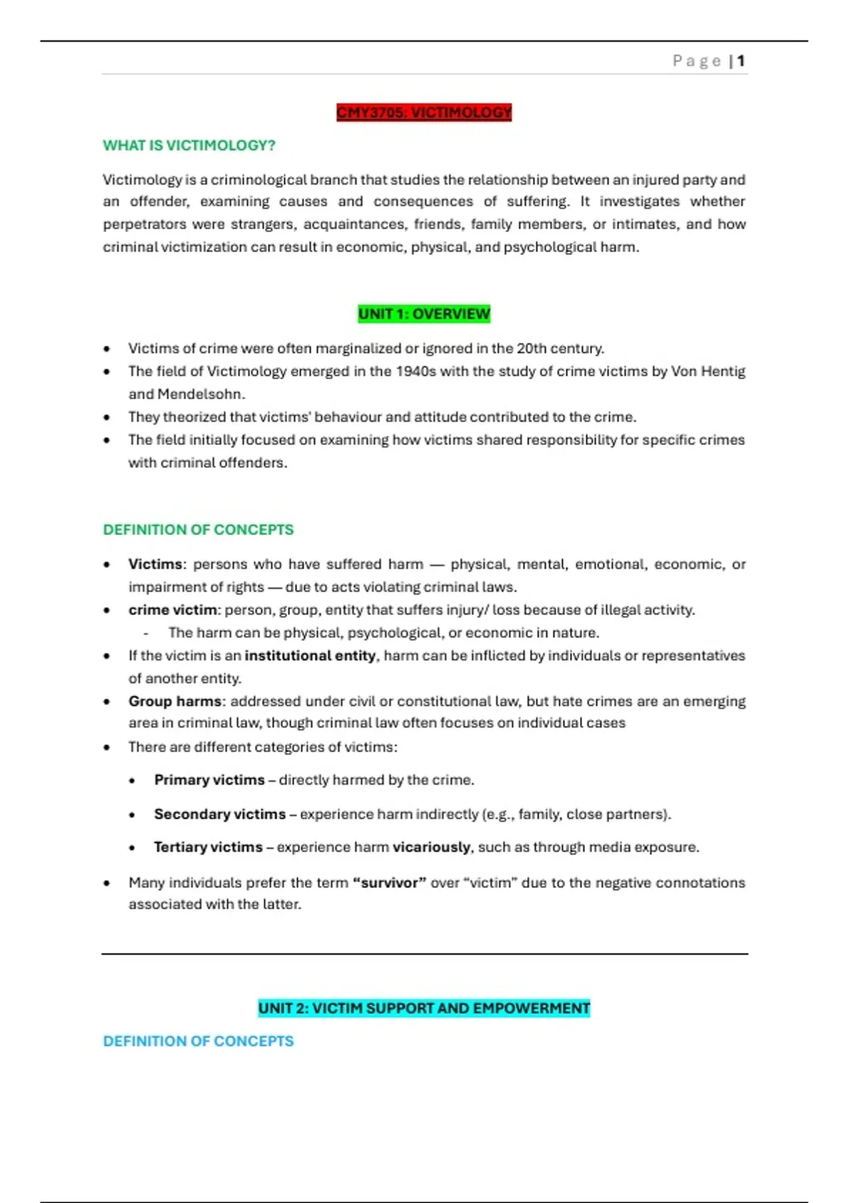 UNIT 2: VICTIM SUPPORT AND EMPOWERMENT