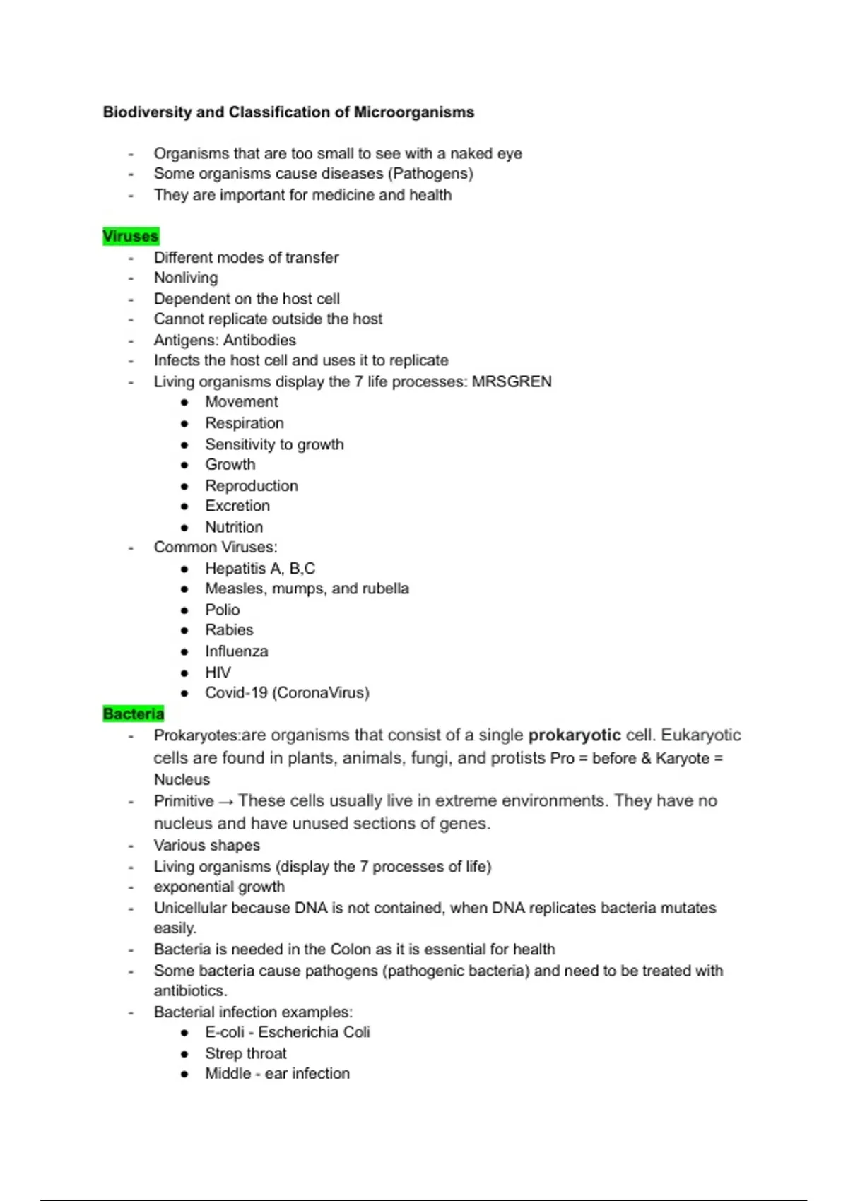 -​ Living organisms display the 7 life processes: MRSGREN