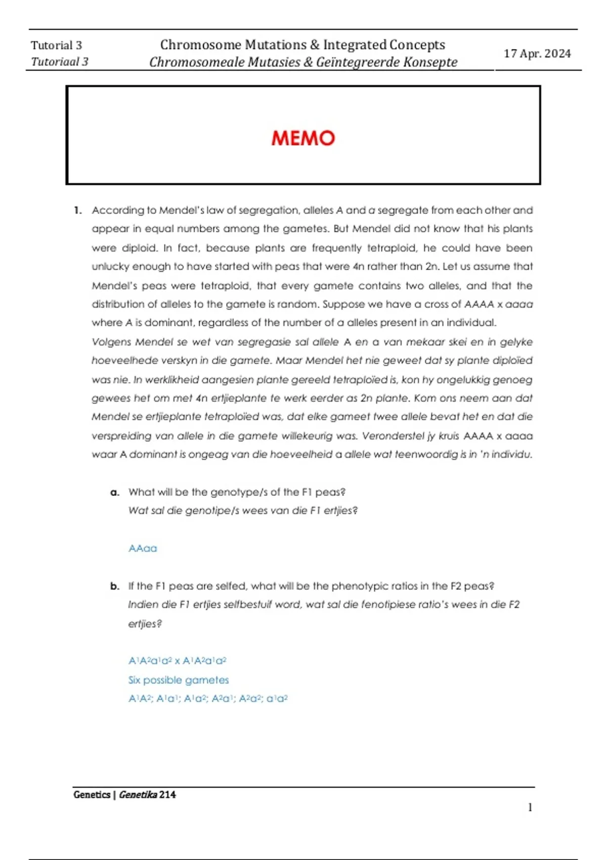 Tutoriaal 3 Chromosomeale Mutasies & Geïntegreerde Konsepte