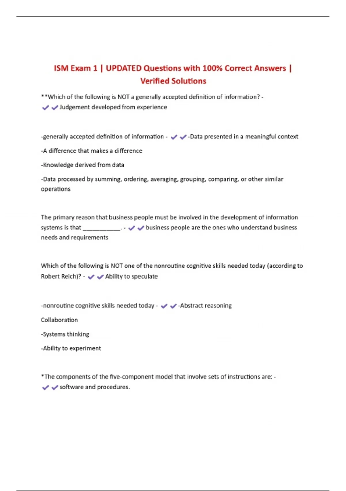 ISM Exam 1 | UPDATED Questions with 100% Correct Answers | Verified Solutions