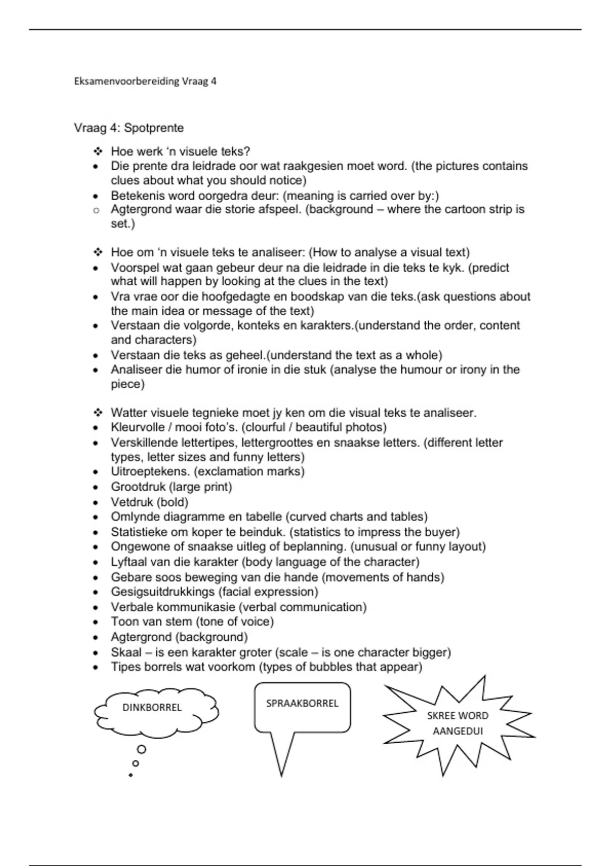 , Watter taal tegnieke moet gebruik word om ‘n visuele teks analiseer: