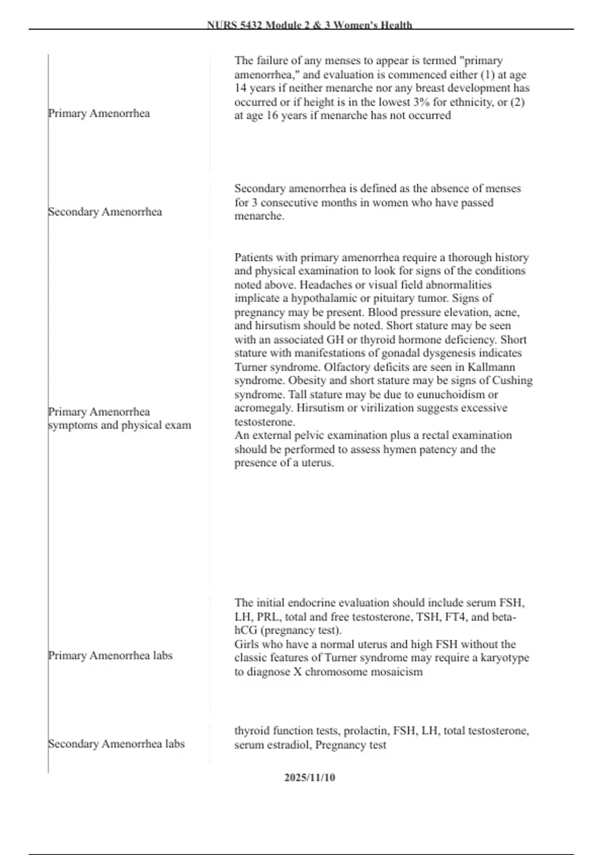 (2025 Updated) NURS 5432 – Modules 2 & 3 Women’s Health | Verified Questions, Answers & Study Guide (Graded A+)