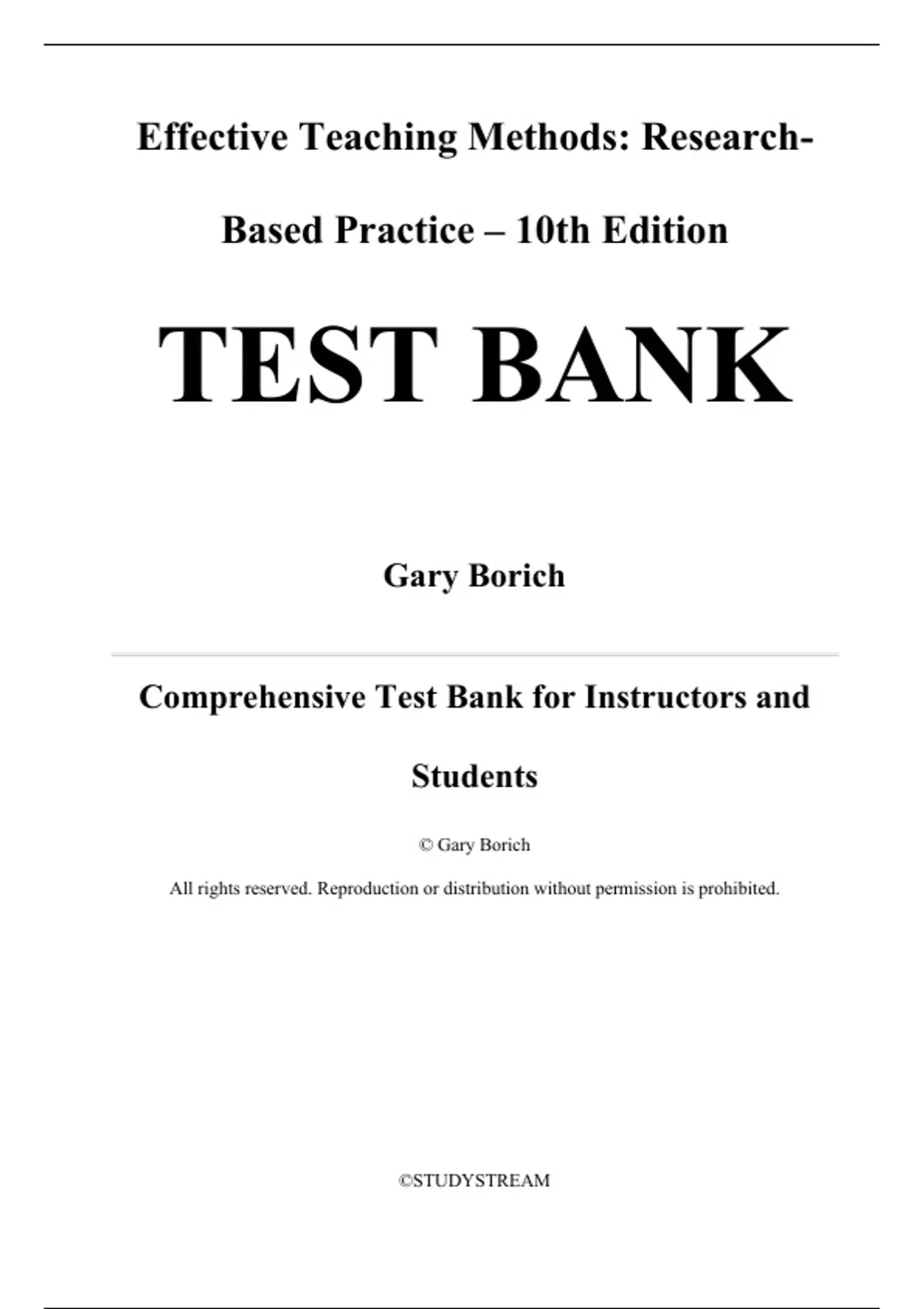 Effective Teaching Methods Research-Based Practice 10th Edition By Gary Borich Test Bank, Questions and Answers (All Chapters)