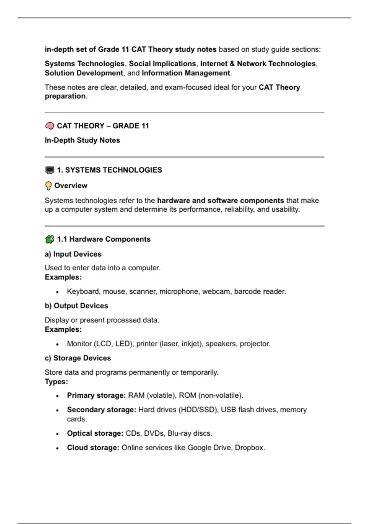 CAT THEORY – GRADE 11
