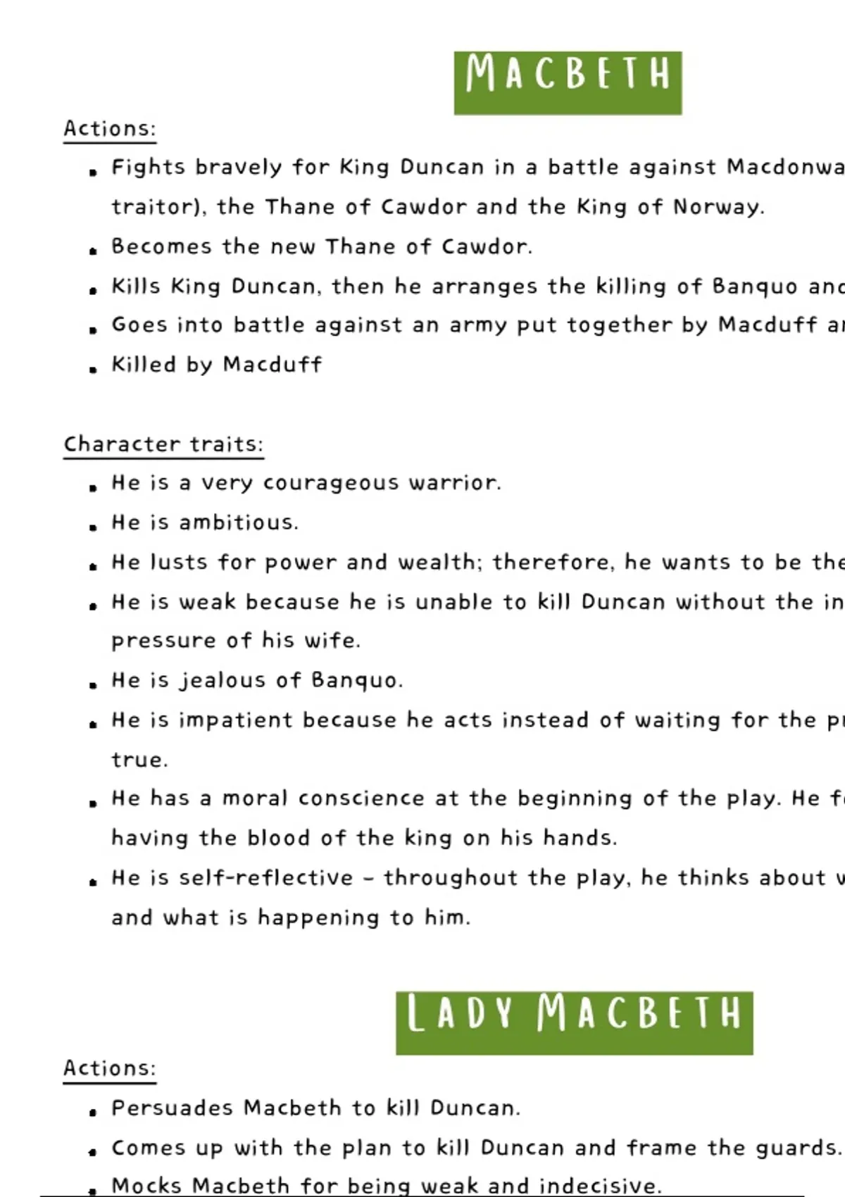 Unlike Macbeth and Lady Macbeth, he does not take any actio