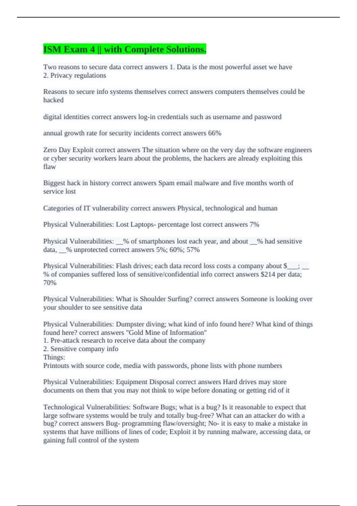 ISM Exam 4 || with Complete Solutions.
