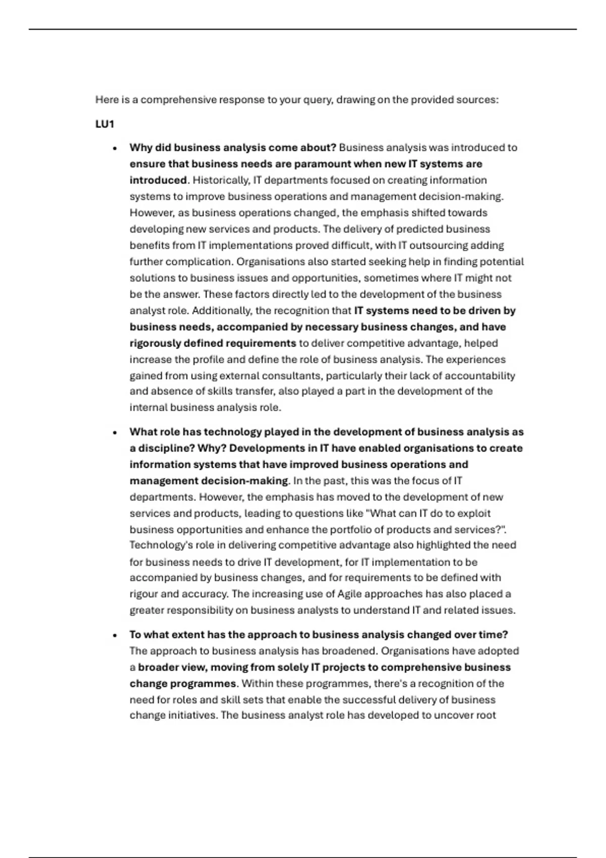 Summary Business Analysis - Business Analysis 2A (BUSA6221) (BUSA6221)
