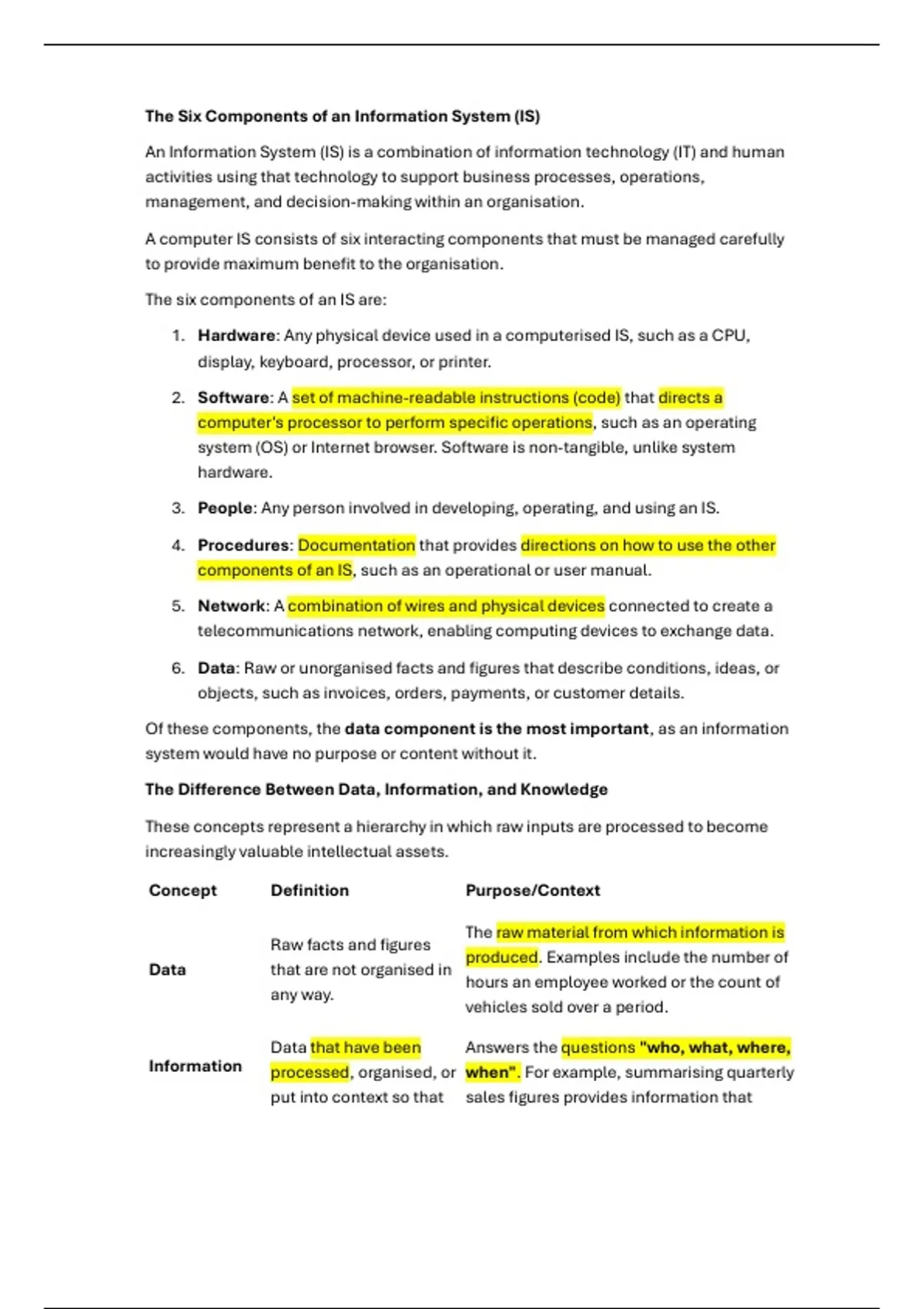 The Six Components of an Information System (IS)