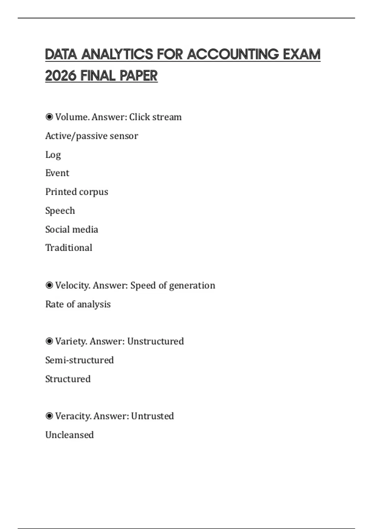 DATA ANALYTICS FOR ACCOUNTING EXAM 2026 FINAL PAPER