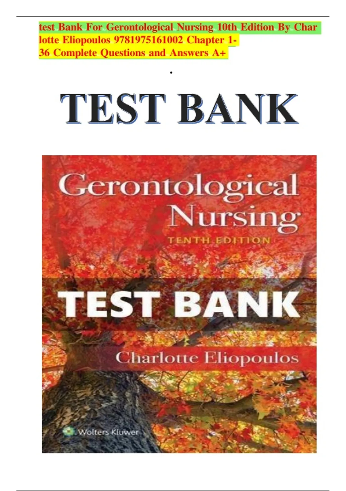 , test Bank For Gerontological Nursing 10th Edition By Char