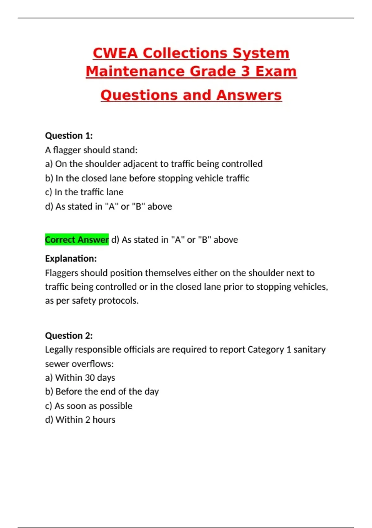 CWEA Collections System Maintenance Grade 3 Exam (Latest 2025 / 2026 Update) Questions and Verified Answers | 100% Correct | Grade A+ Best CWEA collections grade 1 questions and answers, CWEA grade 2 practice test, CWEA grade 4 exam prep, CWEA system maintenance certification, wastewater laboratory analyst certification, wastewater treatment practice questions, CWEA practice exam 2025, wastewater collection system exam, CWEA certification practice test, wastewater system maintenance exam, CWEA grade 1 certification prep, CWEA grade 2 questions, CWEA grade 4 practice questions, wastewater laboratory certification exam, CWEA collection systems practice test, wastewater collection system maintenance, CWEA exam questions and answers, wastewater treatment plant certification, CWEA certified wastewater analyst, wastewater system operation test, CWEA exam prep 2025, collection system maintenance exam, wastewater laboratory analyst practice, CWEA wastewater certification questions, CWEA exam updates 2025, wastewater system certification exam, CWEA collection system questions, wastewater treatment exam prep, CWEA practice questions 2025, wastewater collection system certification, CWEA exam questions and answers 2025, wastewater system maintenance certification, CWEA laboratory analyst exam, wastewater treatment certification exam, CWEA collection system maintenance questions, wastewater wastewater exam practice, CWEA certification exam updates, wastewater system maintenance questions, CWEA practice tests for wastewater, wastewater collection system exam prep, CWEA exam questions 2026, wastewater plant certification practice, CWEA exam success tips, wastewater collection certification questions, CWEA certification exam guide, wastewater laboratory questions, CWEA exam study guide