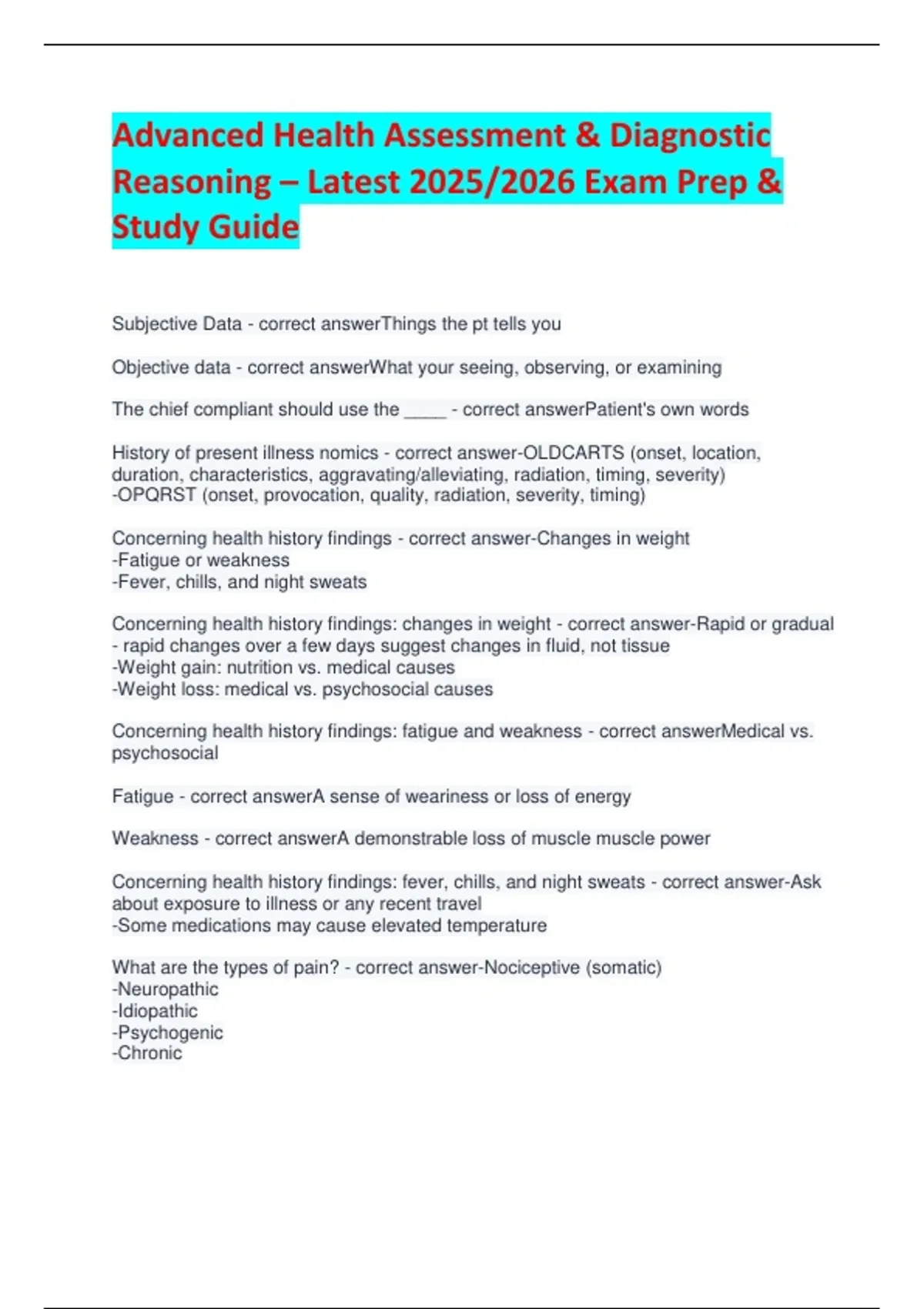 Concerning health history findings: fatigue and weakness - correct answerMedical vs.