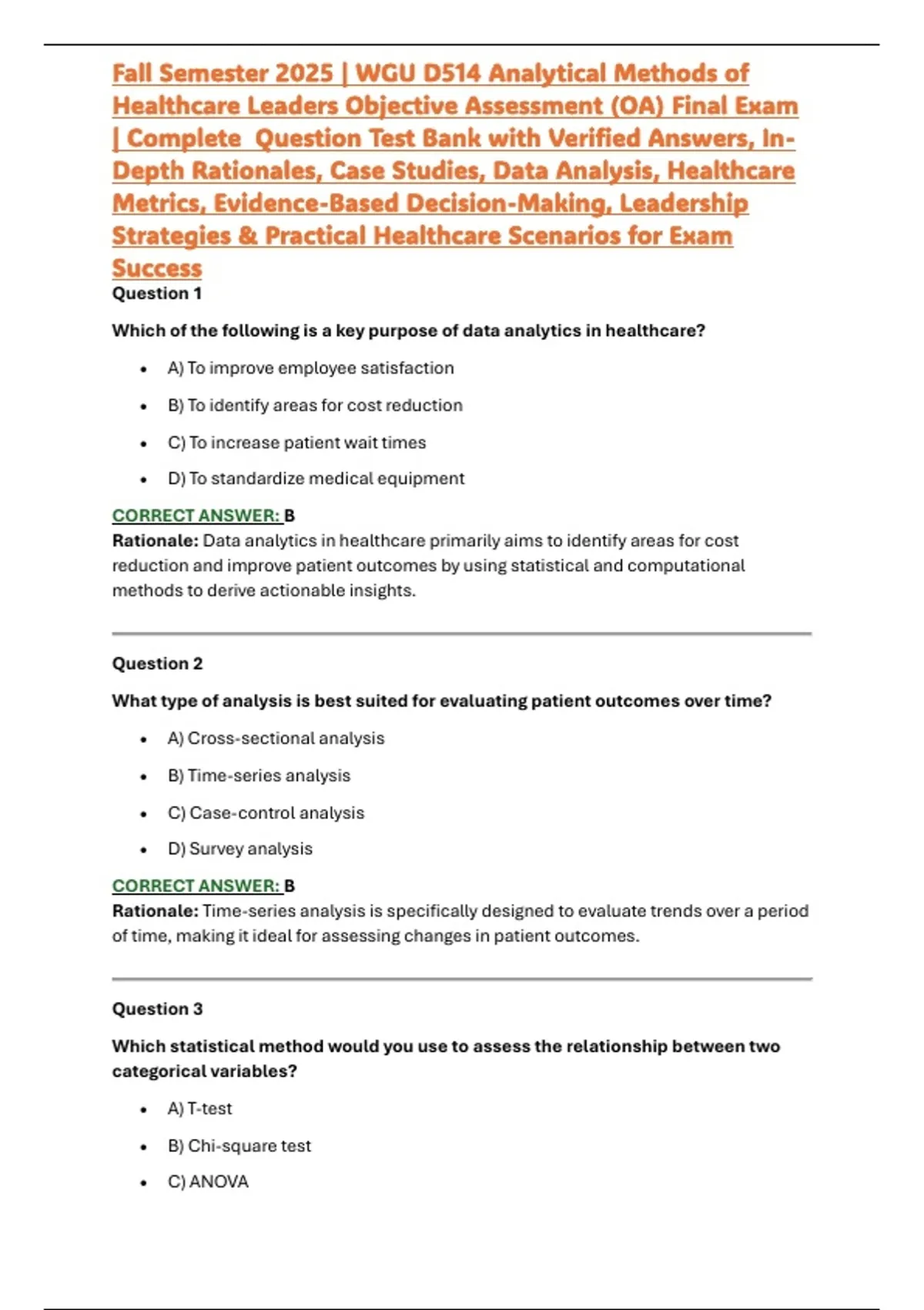 Healthcare Leaders Objective Assessment (OA) Final Exam