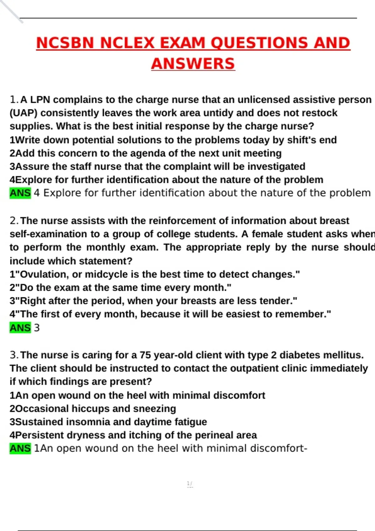 NCSBN NCLEX EXAM QUESTIONS AND