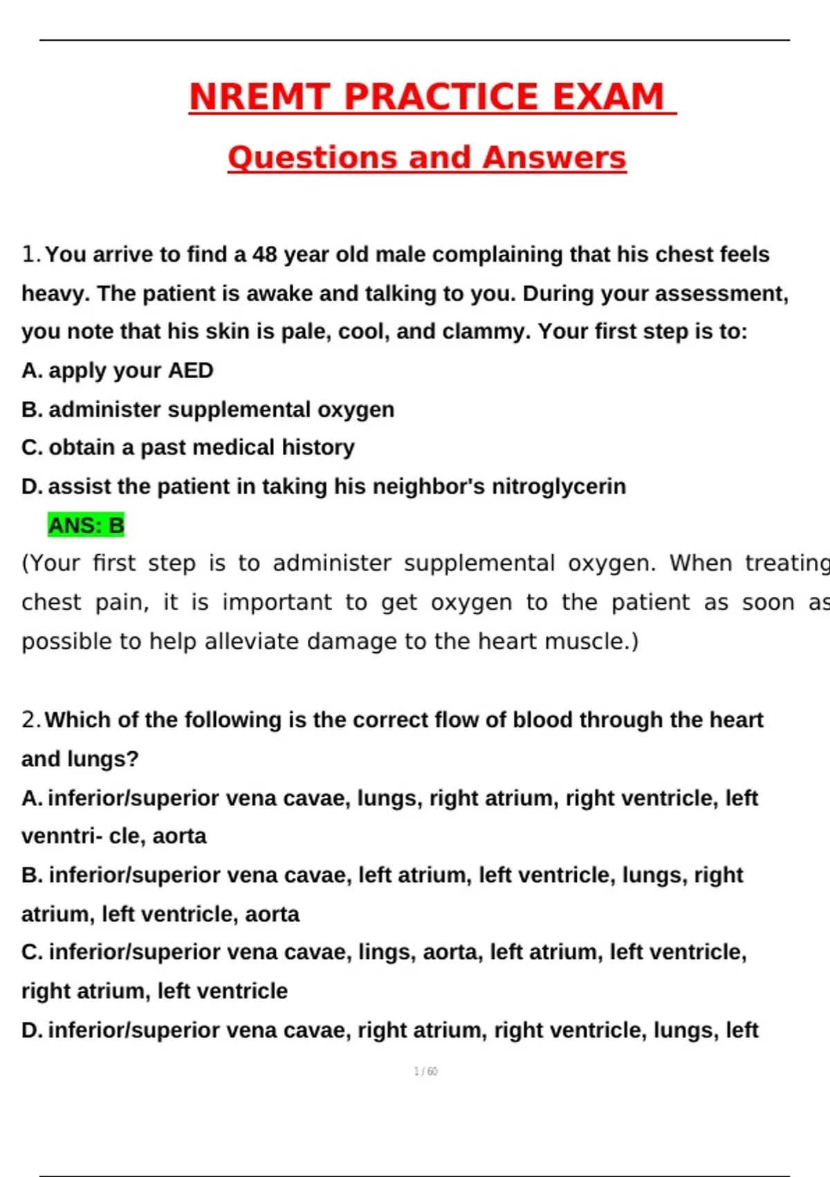 NREMT Practice Questions (Latest 2025 / 2026 Update) Questions and Verified Answers | 100% Correct | Grade A+ Prepare for your EMT exam with our comprehensive actual tests and practice exams designed to boost your confidence and scores.Access the latest NREMT-B practice exams covering diseases, cardiology questions, and more to ensure you're fully prepared for your test.Test your knowledge with NREMT-B multiple choice cardiology questions and verified rationalized answers to master key concepts.Explore our NREMT Practice Test Bank featuring multiple choice exam questions and detailed rationales for effective study.Practice with NREMT practice questions and simulated tests for 2025, including 100 actual questions with correct answers and explanations.Ace your EMT exam with our extensive practice questions, mock tests, and review guides updated for 2025 and 2026.Study smarter with NREMT-B practice exams, review questions, and expert tips to improve your test readiness.Get access to verified NREMT-B practice questions with rationales, designed to mirror the actual exam content and difficulty.Prepare confidently with our latest NREMT practice tests, including diseases, cardiology, and emergency medical scenarios.Boost your EMT exam scores with our practice question bank featuring real exam questions, updated for 2025 and beyond.