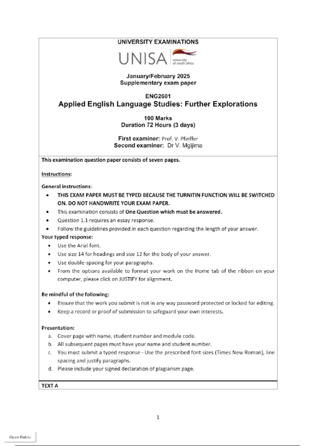 ENG2601 EXAM JANUARY 2025 (Questions and Answers)