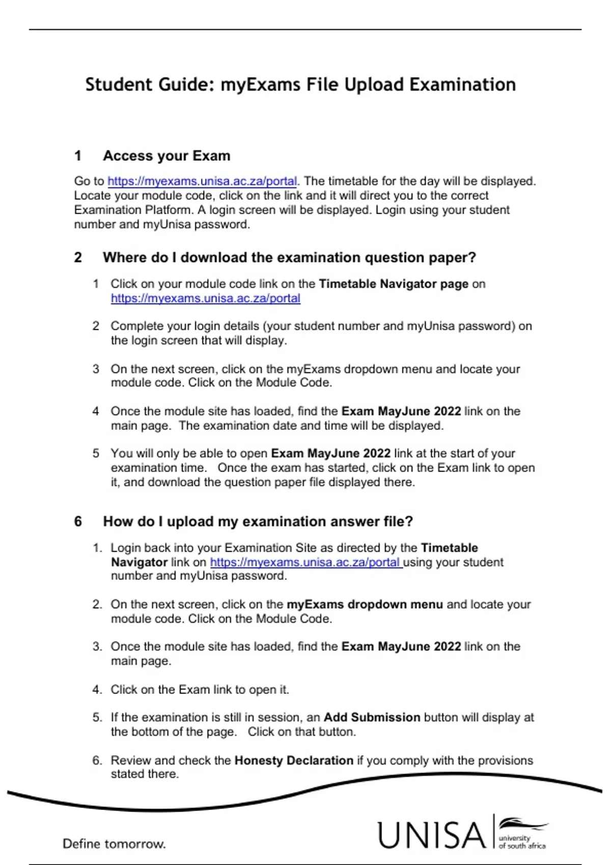 This document just explain to you how to upload the answers after you did you exam paper and what to expect during the exam for the module TAM2601.