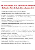 AP Psychology Unit 1 Biological Bases of Behavior Part 1 (1.1, 1.2, 1.3, and 1.4) Newest 2026 Actual Questions and Verified Answers 2026 / 2027 A+ Verified by Experts AP Psychology practice questions and answers, AP Psychology exam prep 2025, AP Psychology updated study guide 2026, AP Psychology Units 1–5 review, AP Psychology Unit 1 study guide, AP Psychology introduction to psychology review, AP Psychology biological bases of behavior practice, AP Psychology Unit 1 multiple choice, AP Psycho...