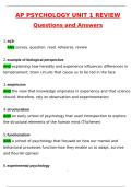 AP Psychology Unit 2 Reading Guide Newest 2026 Actual Questions and Verified Answers 2026 / 2027 A+ Verified by Experts AP Psychology practice questions and answers, AP Psychology exam prep 2025, AP Psychology updated study guide 2026, AP Psychology Units 1–5 review, AP Psychology Unit 1 study guide, AP Psychology introduction to psychology review, AP Psychology biological bases of behavior practice, AP Psychology Unit 1 multiple choice, AP Psychology Unit 2 cognition study guide, AP Psycholog...