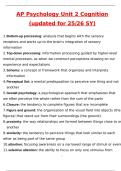 AP Psychology Unit 2 Cognition (updated for 24-25 SY) Newest 2026 Actual Questions and Verified Answers 2026 / 2027 A+ Verified by Experts