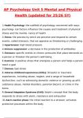 AP Psychology Unit 5 Mental and Physical Health (updated for 24-25 SY) Newest 2026 Actual Questions and Verified Answers 2026 / 2027 A+ Verified by Experts AP Psychology practice questions and answers, AP Psychology exam prep 2025, AP Psychology updated study guide 2026, AP Psychology Units 1–5 review, AP Psychology Unit 1 study guide, AP Psychology introduction to psychology review, AP Psychology biological bases of behavior practice, AP Psychology Unit 1 multiple choice, AP Psychology Unit 2...