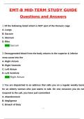EMT-B Mid-Term Study Guide Exam Latest 2026 Actual Questions and Verified Answers (2026 / 2027) A+ Grade 100% Guarantee Verified by Experts EMT exam questions and correct answers, EMT actual exam questions 2025, EMT practice test with answers, EMT 2026 updated study guide, EMT vocabulary study guide, EMT vocabulary exam questions, EMT anatomy and physiology exam review, EMT anatomy physiology practice questions, EMT-B midterm study guide PDF, EMT midterm exam questions, EMT medical emergencies e...
