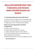 - ATLS 10th Edition Post Test 2 Questions and Answers (2026) | Advanced Trauma Life Support | Complete Exam Review | Latest Verified Answers by Experts | INSTANT PDF DOWNLOAD • Exam (elaborations)