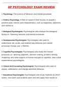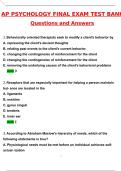 AP Psychology Final Exam Test Bank 350+ Questions Latest 2026 Actual Questions and Verified Answers 2026 / 2027 A+ Verified by Experts Prepare for your AP Psychology Final Exam with 100+ multiple choice practice questions, 350+ test bank questions, and verified answers. Covers all units: Personality, Cognitive, Learning, Social Psychology, Motivation, Development, Memory, Biological Psychology, and more. Includes Semester 1 review, exam prep tips, and instant PDF download. Perfect for students a...