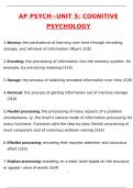 AP Psychology - Unit 5 Cognitive Psychology Newest 2026 Actual Questions and Verified Answers 2026 / 2027 A+ Verified by Experts AP Psychology multiple choice exam questions, AP Psychology practice questions and answers, AP Psychology exam prep 2026, AP Psychology updated study guide 2027, AP Psychology full review all units, AP Psychology personality unit review, AP Psychology personality theories practice, AP Psychology Prologue Chapter 1 review, AP Psychology Unit 0 introduction review, AP Ps...