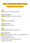 NMLS Laws and Regulations 2026 Actual with Questions & Answers (Latest 2026 / 2027 Update) 100% Guarantee Pass (Verified Answers) NMLS MLO Exam Practice Test & SAFE National Exam Study Guide – Hard Questions with Answers | RESPA, Federal Laws & Regulations | INSTANT PDF DOWNLOAD (2026) NMLS MLO Practice Test is built for candidates preparing for the NMLS SAFE National Exam and MLO Licensing Test. It includes hard practice questions with answers aligned to the official NMLS Test Outline, coveri...