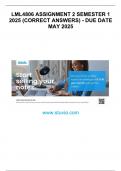 Dimalefe On this page, you find all documents, package deals, and flashcards offered by seller dimalefe. 194 Documents 0 Flashcards 0 Package deal Community 0 Followers 0 Following 4 Reviews received 3 0 0 1 0 2 months ago • danielmabusa TRL4864 EXAM PACK 2024 3 months ago • omhare111 HED4814 assignment 2 2024 (Full solutions) 1 year ago • californiamokgadi06 MNE3701 Assignment 6 Semester 2 2024 - DUE 8 November 2024 QUESTIONS WITH COMPLETE ANSWERS 1 year ago • valentiamathe ECS1601 Assignment 5 (COMPLETE ANSWERS) 2024 (672162) - DUE 25 September 2024 195 items Everything Documents Flashcards Package deal Best sold Newest Rating TRT3701 Answers for Assignment 3 Semester 1 2025 - DUE April 2025. (0) R50,00 0x sold TRT3701 Answers for Assignment 3 Semester 1 2025 - DUE April 2025. i x Other • 19 pages • by dimalefe • uploaded 2025 Quick View i x University of South Africa (Unisa) • Hospitality Administration TPN3704 Assignment 1 (COMPLETE ANSWERS) 2025 - DUE 2025 (0) R50,00 0x sold TPN3704 Assignment 1 (COMPLETE ANSWERS) 2025 - DUE 2025 i x Other • 34 pages • by dimalefe • uploaded 2025 Quick View i x University of South Africa (Unisa) • TPN3704 CUS3701 Assignment 2 (COMPLETE ANSWERS) 2025 - DUE 2025. (0) R50,00 1x sold CUS3701 Assignment 2 (COMPLETE ANSWERS) 2025 - DUE 2025; correct solutions. i x Exam (elaborations) • 35 pages • by dimalefe • uploaded 2025 Quick View i x University of South Africa (Unisa) • UNISA ASSIGNMENT ANSWERS CPR3701 Answers for Assignment 2 QUIZ Semester 1 - DUE 2025. (0) R50,00 0x sold CPR3701 Answers for Assignment 2 QUIZ Semester 1 - DUE 2025. i x Exam (elaborations) • 12 pages • by dimalefe • uploaded 2025 Quick View i x University of South Africa (Unisa) • UNISA ASSIGNMENT ANSWERS COM3705 Assignment 1 (COMPLETE ANSWERS) Semester 1 2025 - DUE April 2025. (0) R50,00 0x sold COM3705 Assignment 1 (COMPLETE ANSWERS) Semester 1 2025 - DUE April 2025. i x Other • 22 pages • by dimalefe • uploaded 2025 Quick View i x University of South Africa (Unisa) • UNISA ASSIGNMENT ANSWERS CMY2604 Assignment 1 (COMPLETE ANSWERS) Semester 1 2025 - DUE 2025. (0) R50,00 0x sold CMY2604 Assignment 1 (COMPLETE ANSWERS) Semester 1 2025 - DUE 2025. i x Other • 13 pages • by dimalefe • uploaded 2025 Quick View i x University of South Africa (Unisa) • UNISA ASSIGNMENT ANSWERS MNM3701 Assignment 3 PORTFOLIO (COMPLETE ANSWERS) Semester 1 2025 - DUE 14 May 2025. (0) R50,00 0x sold MNM3701 Assignment 3 PORTFOLIO (COMPLETE ANSWERS) Semester 1 2025 - DUE 14 May 2025. i x Other • 20 pages • by dimalefe • uploaded 2025 Quick View i x University of South Africa (Unisa) • UNISA ASSIGNMENT ANSWERS LSK3701 Answers for Assignment 2 2025 - Due 2025. (0) R50,00 0x sold LSK3701 Answers for Assignment 2 2025 - Due 2025. i x Other • 17 pages • by dimalefe • uploaded 2025 Quick View i x University of South Africa (Unisa) • UNISA ASSIGNMENT ANSWERS LML4806 ASSIGNMENT 2 SEMESTER 1 2025 (CORRECT ANSWERS) - DUE DATE MAY 2025. (0) R50,00 0x sold LML4806 ASSIGNMENT 2 SEMESTER 1 2025 (CORRECT ANSWERS) - DUE DATE MAY 2025. i x Other • 8 pages • by dimalefe • uploaded 2025 Quick View i x University of South Africa (Unisa) • UNISA ASSIGNMENT ANSWERS IOP3705 Assignment 3 QUIZ (100- COMPLETE ANSWERS) Semester 1 2025 (764094) - DUE 14 May 2025. (0) R50,00 0x sold IOP3705 Assignment 3 QUIZ (100- COMPLETE ANSWERS) Semester 1 2025 (764094) - DUE 14 May 2025. i x Exam (elaborations) • 15 pages • by dimalefe • uploaded 2025 Quick View i x University of South Africa (Unisa) • UNISA ASSIGNMENT ANSWERS 1 2 3 4 5 ...
