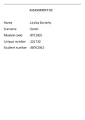 BTE2601 ASSIGNMENT 2 2022
