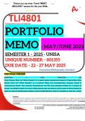 TLI4801 PORTFOLIO MEMO - MAY/JUNE 2025 - SEMESTER 1 - UNISA - DUE DATE :- 22 - 27 MAY 2025 - (DETAILED ANSWERS WITH FOOTNOTES AND BIBLIOGRAPHY - DISTINCTION GUARANTEED!)