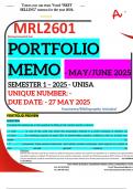 MRL2601 PORTFOLIO MEMO - MAY/JUNE 2025 - SEMESTER 1 - UNISA - DUE DATE :- 27 MAY 2025 - (DETAILED ANSWERS WITH FOOTNOTES AND BIBLIOGRAPHY - DISTINCTION GUARANTEED!)