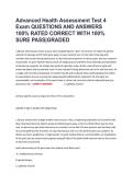Advanced Health Assessment Test 4 Exam QUESTIONS AND ANSWERS 100% RATED CORRECT WITH 100% SURE PASS|GRADED