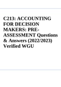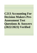C213 : ACCOUNTING FOR DECISION MAKERS: PRE- ASSESSMENT Questions & Answers (2022/2023) Verified WGU