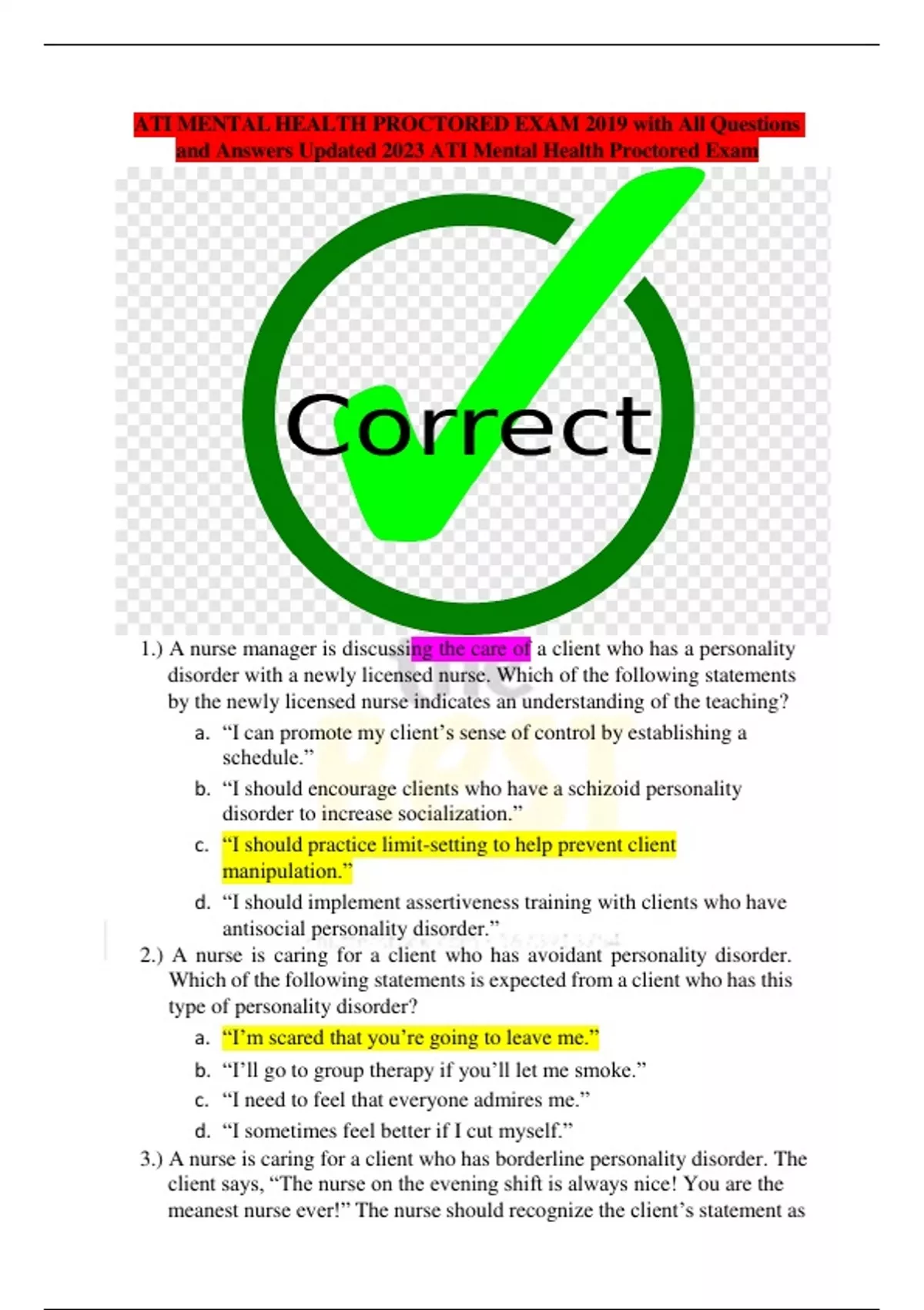 ATI PN Mental Health Proctored Exam Bundle |ATI Mental Health Exam Actual Exams | Different Versions | Questions and Answers | Verified Answers
