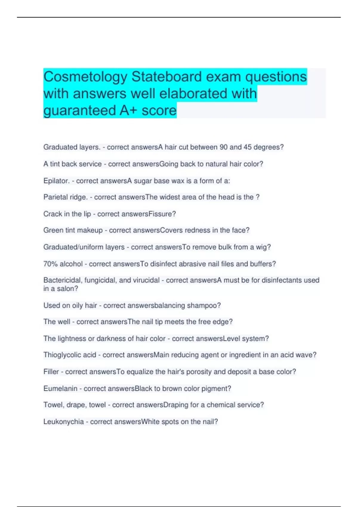 Cosmetology Practice test questionsCosmetology State Board Practice Test (146 questions)Cosmetology Stateboard exam questions